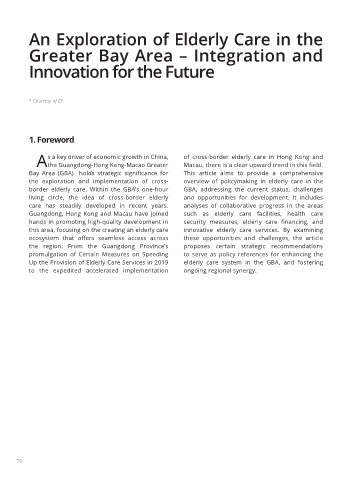 border elderly care. Within the GBA’s one-hour GBA, addressing the current status, challenges