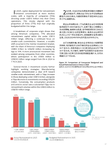 Sectoral trends in investment volume further 图表34. 2025年在华预算再投资与实际再投资的企业分布情况