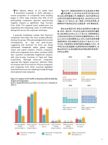 began in 2018. Data indicates that 69% of the 业表示受到美国关税的负面冲击,该比例较2024年