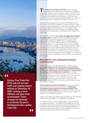 Hainan Free Trade Port in the Hainan FTP that contain imported materials and