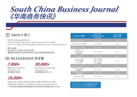 广交会及深圳高新技术博览会期间(4月及10月)发行量升至约2.5万本 5% discount for 3 issues 购买3期可享5%折扣